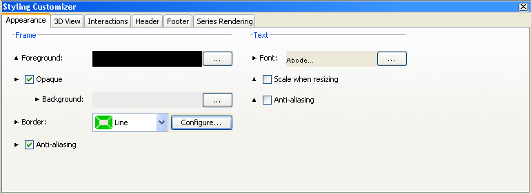 For the following interactors the JViews Charts Designer allows you to specify additional settings: