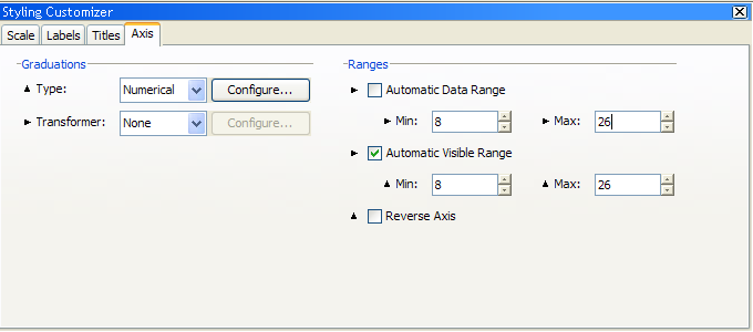 If you set these options to Automatic mode, the ranges are automatically computed to fit the data actually displayed by the chart.