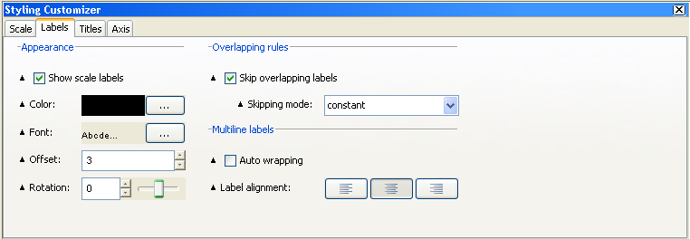 NOTE The label wrapping does not check the orientation nor the type of the scale. Similarly, it does not take into account the rotation of scale labels. It should only be enabled for scales whose labels are parallel to the axis.