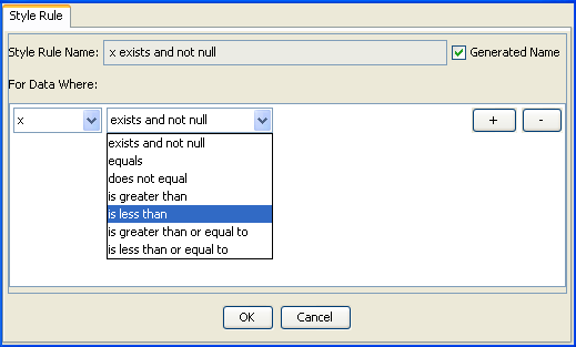 The Create Style Rule Wizard simplifies the definition of data rules which can include attribute conditions.