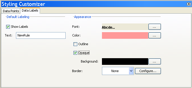 1. With the new rule selected, activate the Data Labels tab in the Styling Customizer.