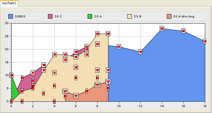 All the series that have the labelled property are annotated with data labels, as illustrated below: