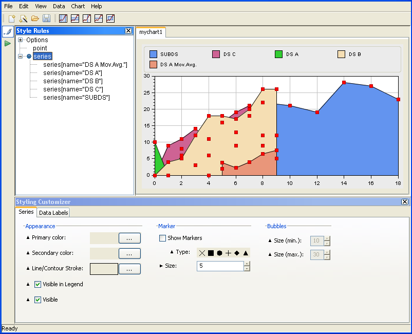 You can customize the global appearance of your chart by creating or changing the styles rules that define the styling of the data.