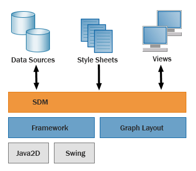 SDM relies on the services of two underlying layers, also included in JViews Diagrammer—the Framework SDK and the Graph Layout SDK.