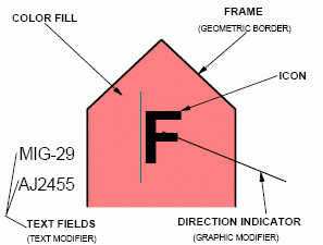 T | Unique Designation | Text modifier for units, equipment, and installations that uniquely identifies a particular symbol; track number. Identifies acquisition number when used with SIGINT symbology. |