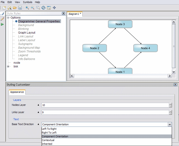 You can set the base text direction in the diagram through the Styling Customizer in Style Editing Mode.