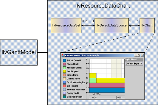 IlvScheduleDataChart. The bean encapsulates the Gantt and Charts libraries. Together with the Gantt data model, the bean is the main class for handling Resource Data charts in