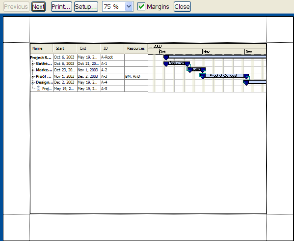 In the Designer, you have the following printing facilities for a Gantt chart:
