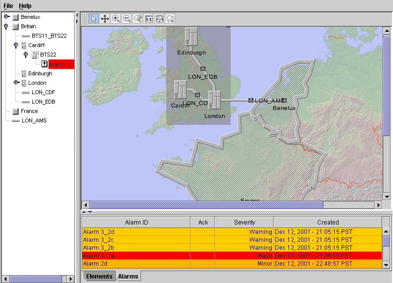 Shows you how to read in a file containing alarms, which are instances of a custom business class. Custom business classes are dynamic classes that you define for yourself, as opposed to those that are predefined in JViews TGO. They can be used to represent any type of business object.