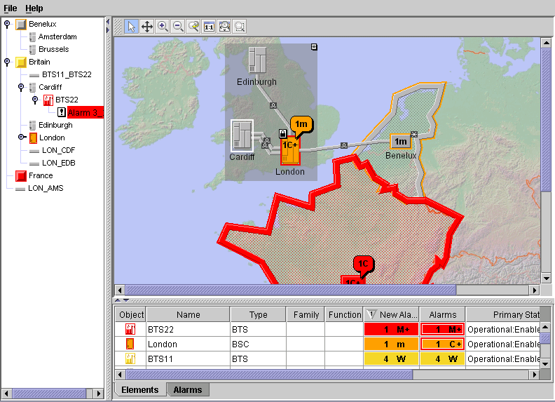 Here, you assign the state objectState with its possible alarms to the object london. The data source and its attached graphic components are automatically notified of this change.