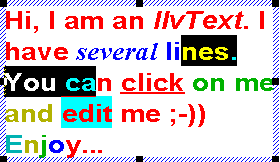 IlvText object appears as a single line of text or several lines of text that can be zoomed and rotated. In multiline mode, the text can be either wrapped or truncated and can be aligned on the leading, center, or trailing position.