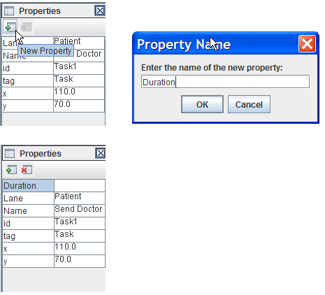 Add new properties to the selected element of the diagram; see the following figure. The property is saved in the XML document.