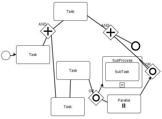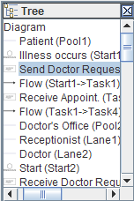 The Tree View displays the elements of the diagram as a tree. Objects selected in the Tree View are also selected in the Diagram View. Subprocesses are displayed as branches that can be expanded or collapsed.