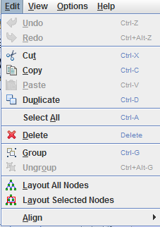 This menu gives access to a list of alignment commands that you can use to arrange nodes manually. They are complementary to the automatic layout commands. See