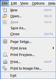 Use this menu to create a new document, open, close, or save a document, define the printing parameters, and exit the application.