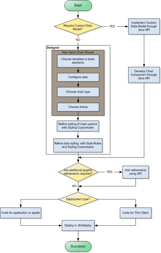 The following figure shows the process flow for building a chart component in Rogue Wave®JViews Gantt.