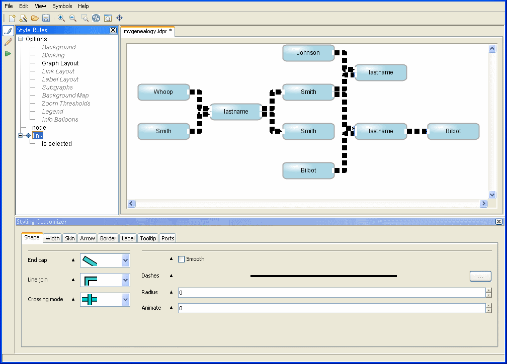 The graph layout used is Hierarchical, from left to right. This is governed by the Graph Layout option in the Options section of the Style Rules. To see the Styling Customizer, select Graph Layout; see the following figure.