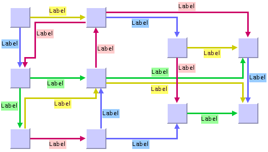 After layout, the labels are placed close to the related obstacle according to the label descriptor. For instance, a link label is placed close to its link. However, if you move the link interactively, the label normally stays at the old position, which may be far away from the link after the movement. The label loses the connection to the link, and a new layout is necessary.
