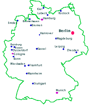 Label placement at cities in a map of Germany with Annealing Label Layout