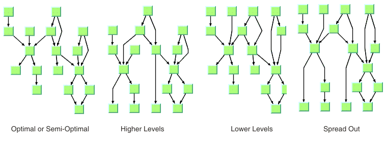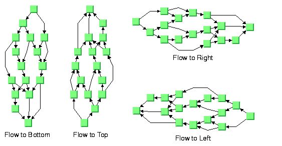 Arranges the graph such that most of the links are short and flow uniformly in the same direction (from left to right, from top to bottom, and so on).