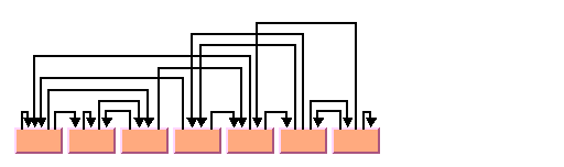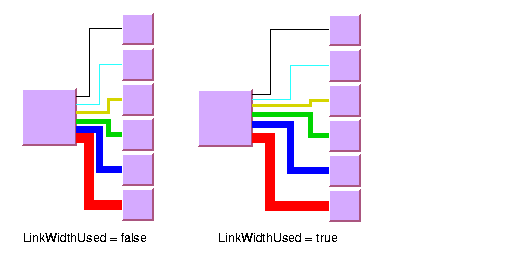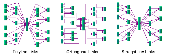 The shapes of the links are calculated such that the links bypass the nodes at the level lines. In many cases, it requires that a bend point is created whenever a link needs to cross a level line. In a top-to-bottom layout, these bend points have the same y-coordinate as the level line they cross. (These bend points also obtain a position index).
