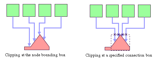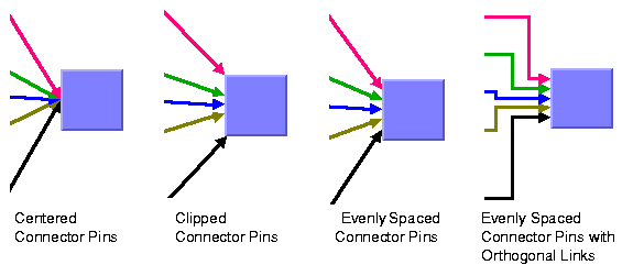 Supports port specifications where links attach the nodes. Allows you to specify which side of a node (top, bottom, left, right) a link can be connected to or to specify which relative port position must be used for the connection.