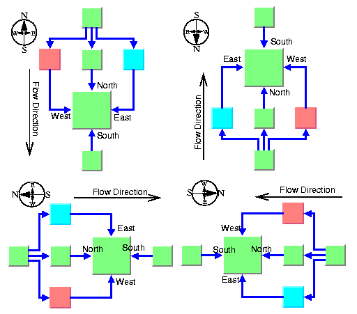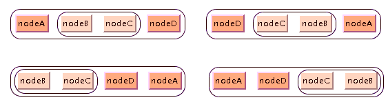 Layout constraints in recursive layout mode work only between nodes that belong to the same subgraph. Constraints among nodes of different subgraphs are ignored. The concepts EAST, WEST, NORTH, SOUTH of extremity constraints are interpreted relative to the subgraph, not relative to the global graph. Similarly to the layout parameters per node or per link, the constraint must be installed at the layout instance of the subgraph of the node.