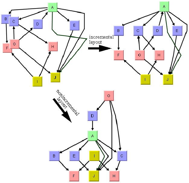 Incremental and nonincremental mode. In incremental mode, the previous position of nodes are taken into account. Positions the nodes without changing the relative order of the nodes so that the layout is stable on incremental changes of the graph.