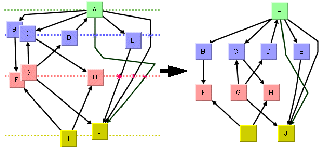The nodes are partitioned into groups. Each group of nodes forms a level. The objective is to group the nodes in such a way that the links always point from a level with smaller index to a level with larger index.