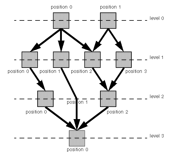 Level and position indexes shows how the Hierarchical Layout algorithm uses the level and position indexes to draw the graph.