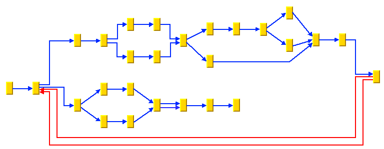 The computation time required to obtain an appropriate drawing depends most significantly on the number of bends in the links. Since the algorithm places one bend whenever a link crosses a level, the number of bends can grow relatively quickly if the layout requires many long links that span several levels. Therefore, the layout process can become time-consuming for dense graphs (the number of links is relatively high compared to the number of nodes) or for graphs that require many node levels.