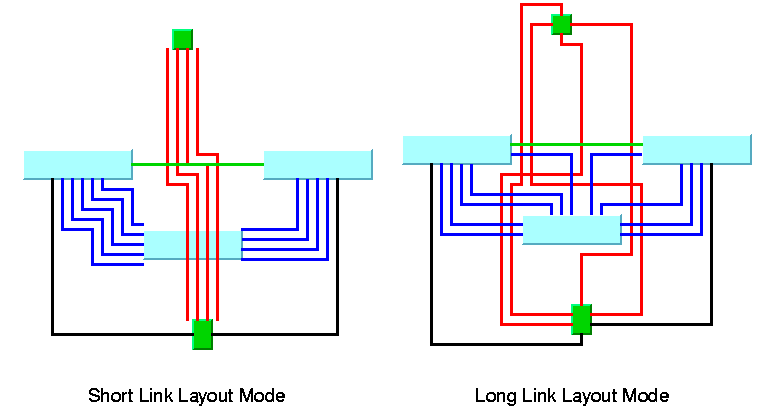 Two layout modes: short linkswith a limited number of bends or long linkswith unlimited number of bends.