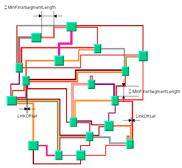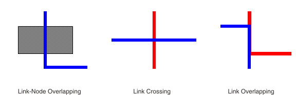 The Long Link Layout algorithm considers nodes to be obstacles that cannot be overlapped and links to be obstacles that can be crossed at an angle of 90 degree (approximately, if the link style is direct), but that cannot be overlapped.