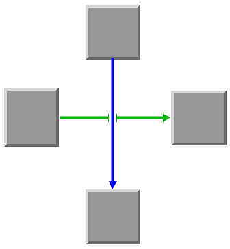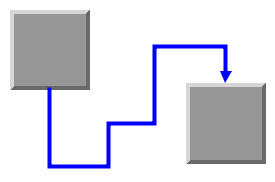 If you set the method setOrthogonal setOrthogonal. of the class IlvEnhancedPolylineLinkImage to true, the link stays orthogonal, even if you try to reshape it interactively. You can add or remove bends, or move bends interactively, the link always reorganizes the adjacent bends so that the link keeps an orthogonal shape, as illustrated in Orthogonal link between two nodes.