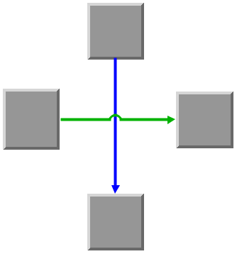 The method setCrossingMode of the class IlvEnhancedPolylineLinkImage enables you to select the aspect of the image of the link at the place where two links cross. To do so, set the mode parameter to one of the following options: