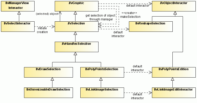 Describes the relationships between classes used for interactors and selection.