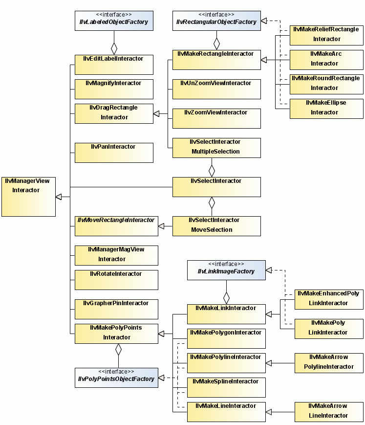 An instance of IlvObjectInteractor can be shared by several graphic objects. This allows you to reduce the amount of memory needed to handle the same interaction on a large number of graphic objects. To share the same object interactor instance, do not use new to create your interactor; use the Get method of the class IlvObjectInteractor.