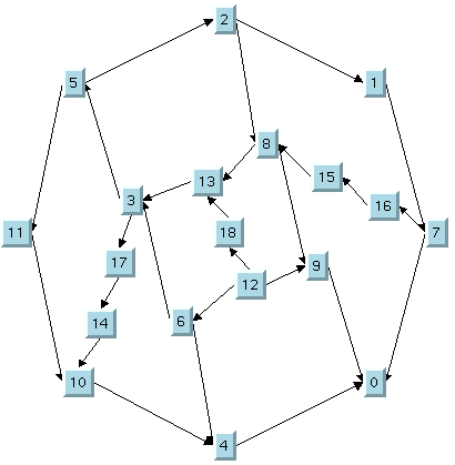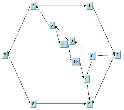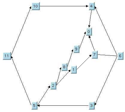 This step determines what cycles of the graph, if used as an outer cycle for drawing the graph during nodes placement, will allow a drawing with a minimum number of link crossings. An optimization algorithm tries to minimize a heuristic cost function that estimates the number of link crossings for each solution, based on pure topology (graph connectivity)