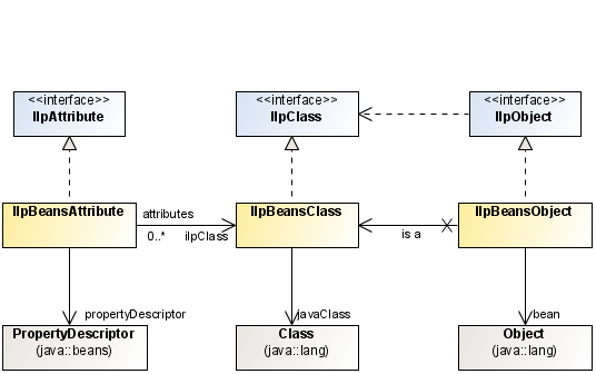 If the back-end application is made up of classes that fully comply with the JavaBeans™ pattern, you can integrate these classes easily using the JViews TGO wrapper for existing JavaBeans classes (see Reminder about JavaBeans design patterns). This wrapper, defined by IlpBeansClass, makes it possible to access the class as if it were a dynamic class. Business object instances also have a corresponding wrapper— IlpBeansObject—that allows the user to view them as dynamic objects.