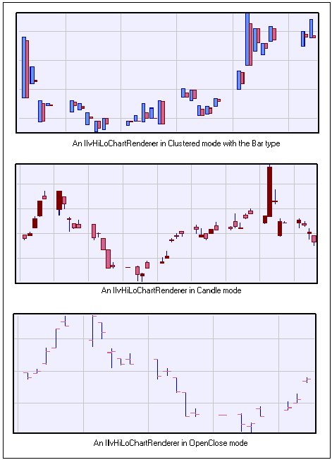 IlvHiLoChartRenderer class defines 3 representation modes: