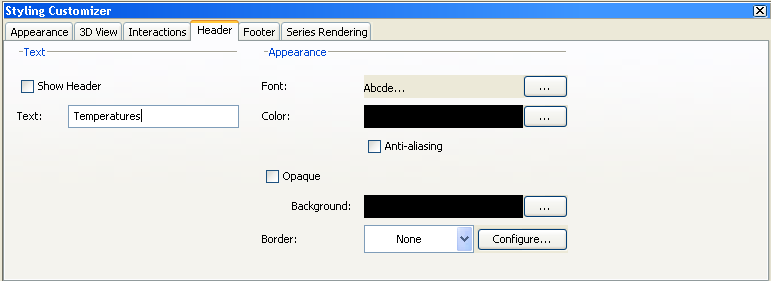 Go back to Style Editing mode, select Chart General Properties and click the Header tab to add a title at the top of your chart.
