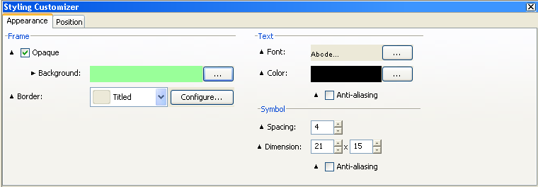 Select the new decoration and activate the Appearance tab on the Styling Customizer pane.