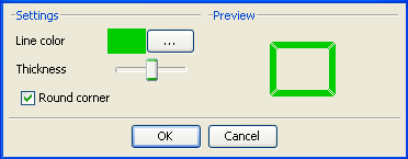 From the border list, choose Line and click the Configure button. Change the line color to green, increase the thickness and check the Round corner option.