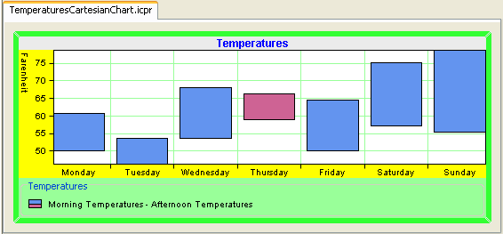 Open the project TemperaturesCartesianChart.icpr you saved in the Getting Started. This is how the basic Cartesian chart appears in the Designer: