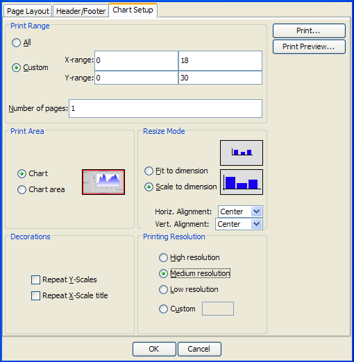 From the Chart Setup tab of the Page Setup window, you can define the following settings: