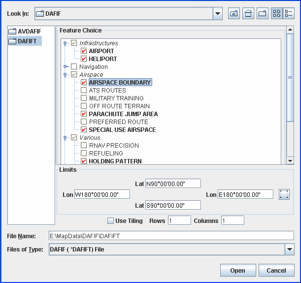 If the data source is a DAFIF file, there are a number of other parameters that you can set.