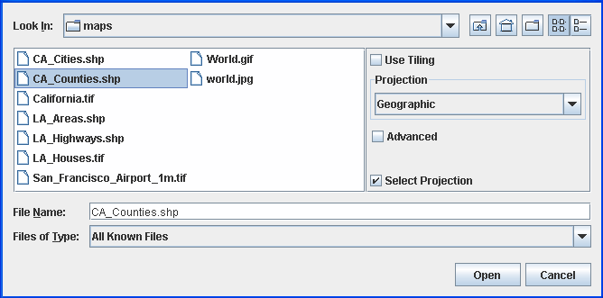 The following figure shows the generic filter “All Known Files” for importing any type of file.