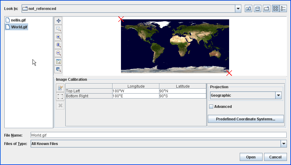 If the data source is a nongeoreferenced image file ( .gif, .tif, .jpg, .jpeg ), there are specific options that you can set.