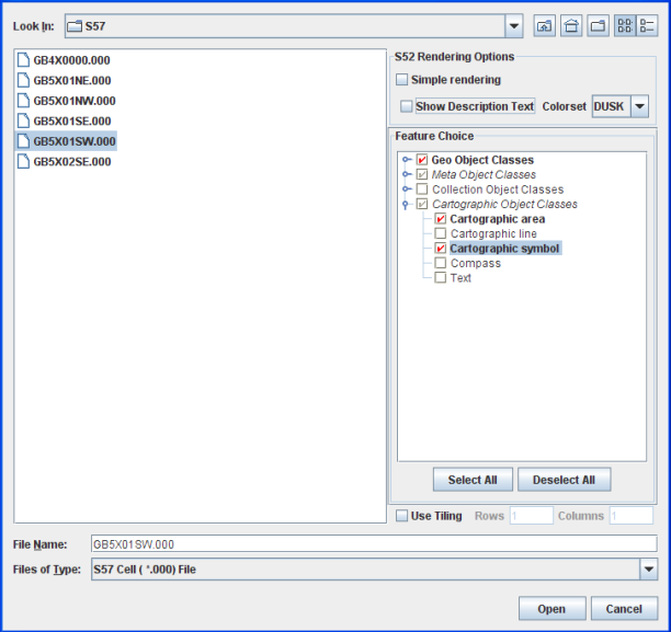 If the data source file is an S57 file or catalog database file, there are a number of other parameters that you can set.