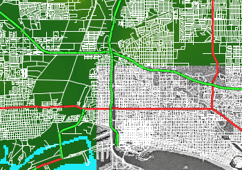 The following figure shows an example of a map showing road, highway, and motorway layers.